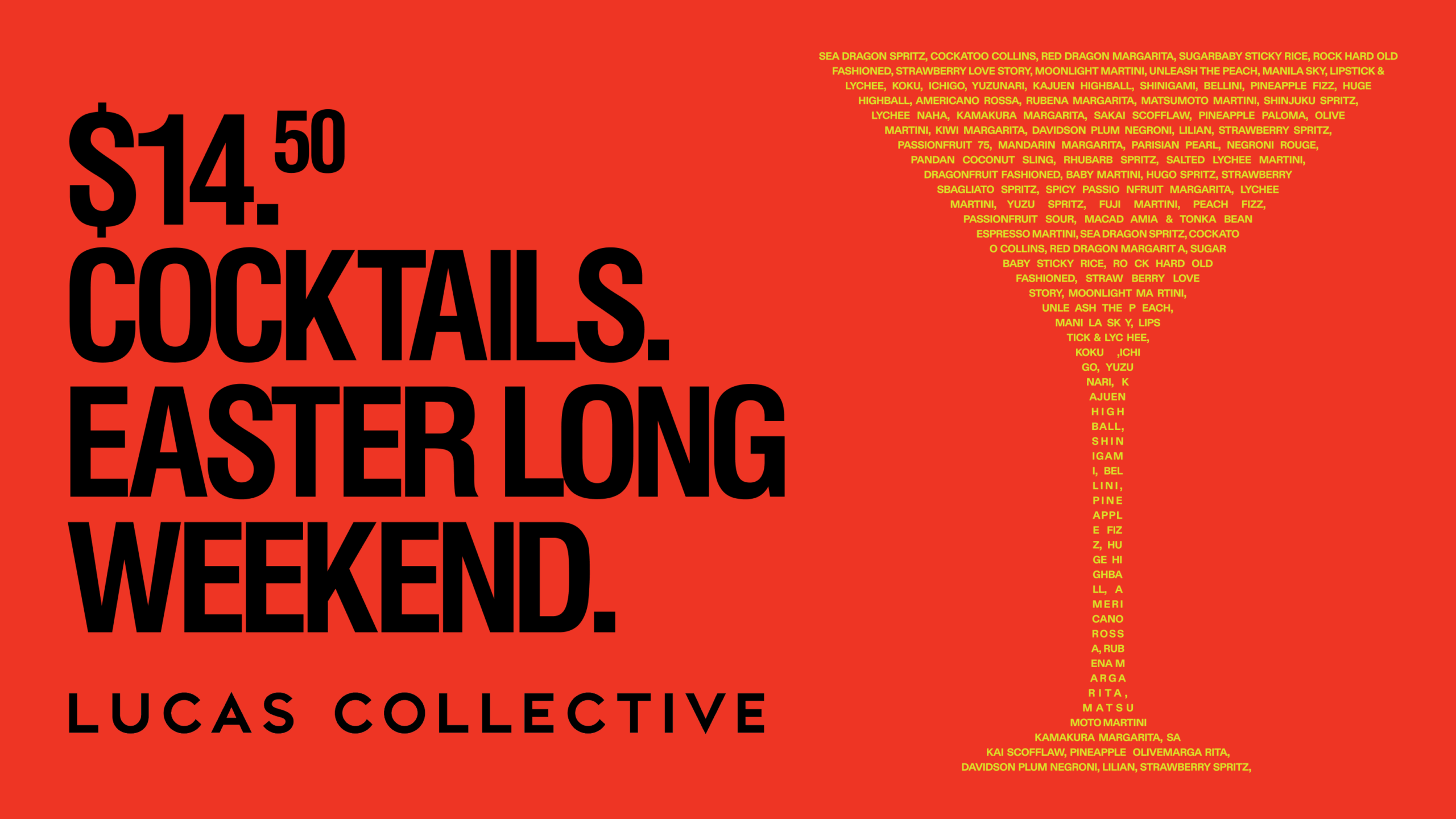 Easter long weekend plans sorted with a line-up of signature cocktails made for long lunches, late nights and everything in between.